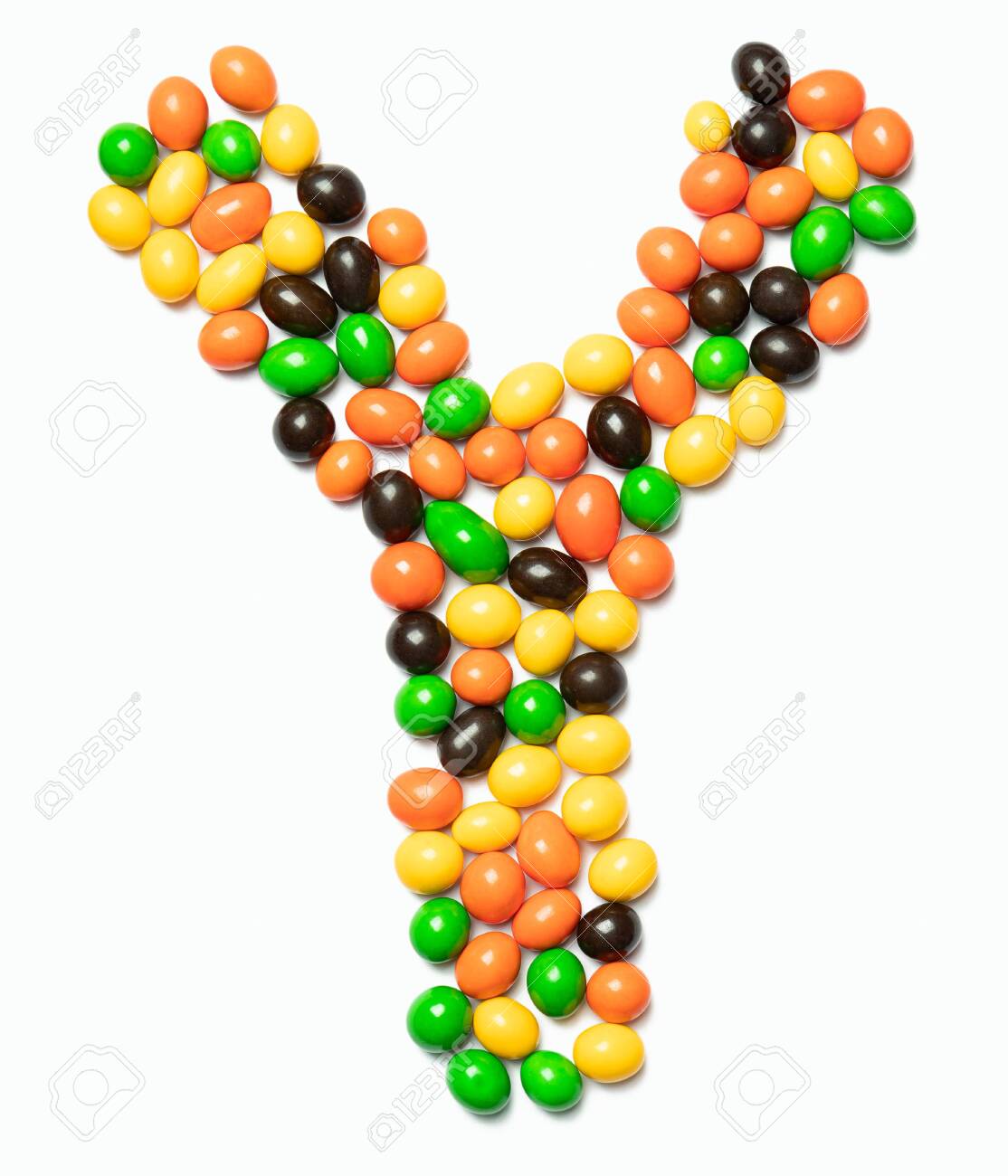 Letter Y Of The English Alphabet From Multicolored Round Chocolates On A White Isolated Background Food Pattern Made From Children S Candy Bright Alphabet For Kids Design Stock Photo Picture And Royalty Free